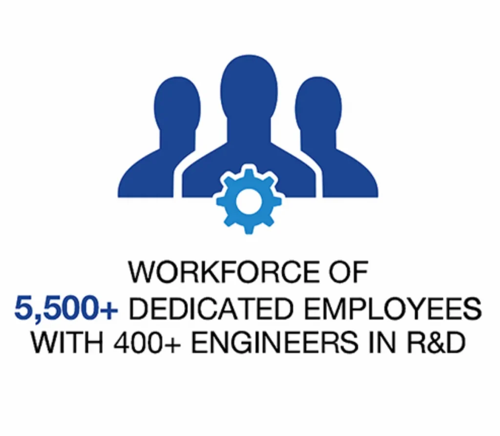 قوة عاملة اكثر من 5,500 موظف مع اكثر من 400 مهندس في البحث والتطوير